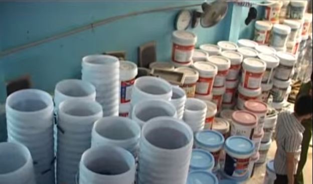 Người ta mua sơn thật, và thường ở nhóm hàng cao cấp sau đó rút bớt khối lượng bên trong. Thường là 10-15% – sang qua 1 thùng mới. Thế là từ 7-9 thùng người ta có ngay 1 thùng. Có người thắc mắc việc khui 7-9 thùng sơn kia ra sẽ hư vỏ thùng. Phải thay hết vỏ thùng? Không hề có việc đó. Người làm giả có các thiết bị tuy đơn sơ nhưng rất hiệu quả để khui thùng nhanh chóng, nhẹ nhàng mà không hề bị 1 dấu vết nào. Do đó, họ chỉ tốn thêm tiền cho 1 vỏ thùng mới.